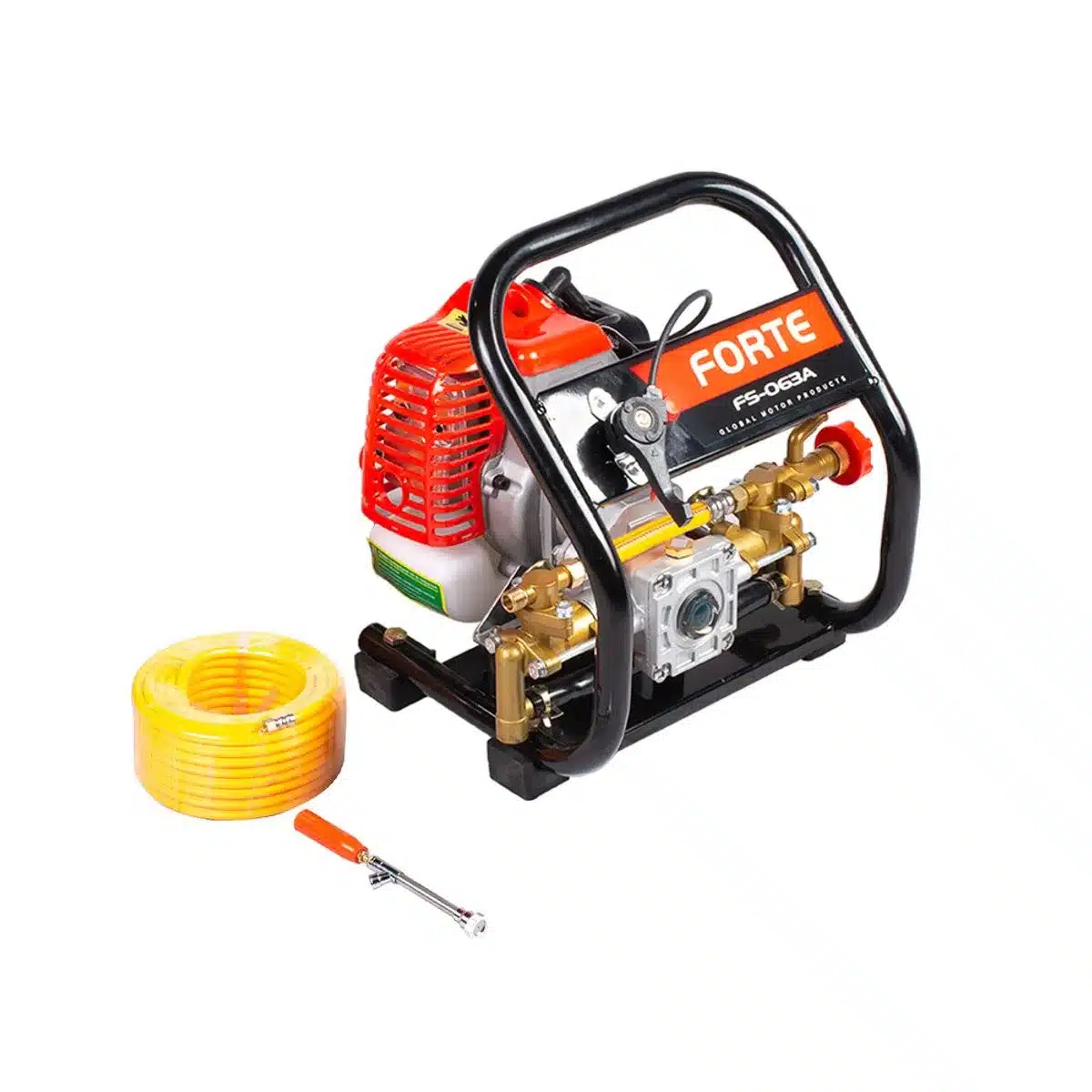 Fumigadora Estacionaria FORTE portátil a gasolina 26cc FS-063A-S, incluye lanza, tarro mezclador, kit de herramientas 20m de manguera y kit de succión.