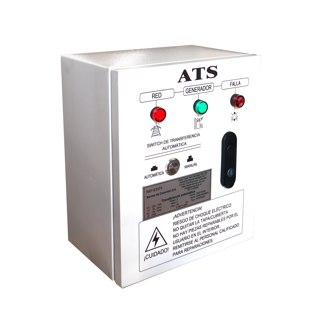 Planta Eléctrica Diésel 7.2kVA 120v/1f 240v/3f + ATS Barnes DG9000CLE + ATS3F, E3373, es un generador diésel de alto rendimiento diseñado para aplicaciones industriales y de emergencia que requieren una fuente de energía robusta y confiable. Equipada con un motor Hi-Energy de 10 HP, esta unidad ofrece una potencia máxima de 7.2 kVA (potencia nominal de 7.0 kVA) cuenta con un sistema de arranque eléctrico para facilitar su operación. Con un voltaje de salida dual de 120/240V a 60Hz, regulación automática de voltaje (AVR) y salida de 12V DC para carga de baterías, este equipo es la solución ideal para sectores residenciales de alto consumo o comerciales que no pueden permitirse interrupciones en el suministro energético.