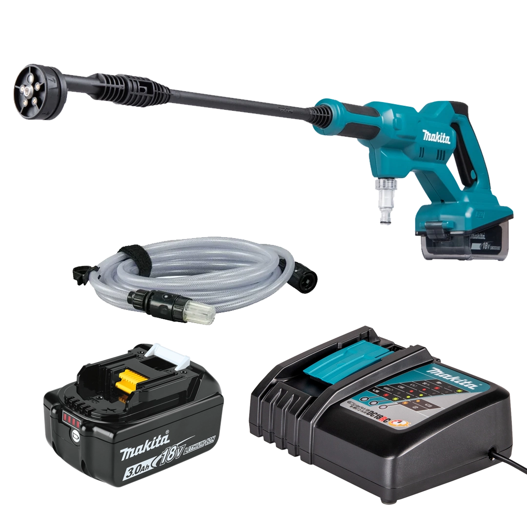 Incluye: Hidrolavadora Inalámbrica Makita 348psi (DHW180) + Cargador (630714-3PRO) + 1 Batería 18v 3.0Ah (i96617)