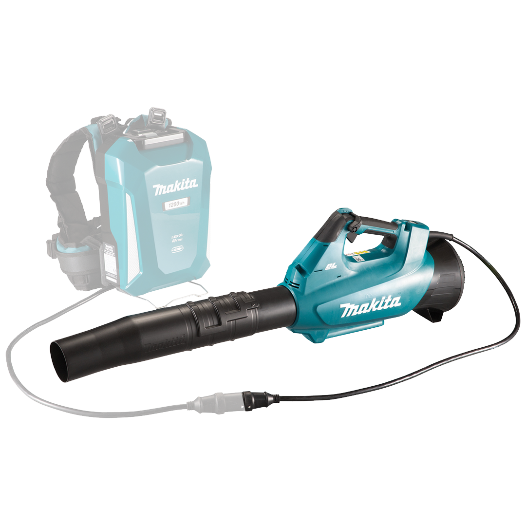 Soplador Inalámbrico Makita 0 a 24.000 RPM 40V Brushless UB001CZ, Sistema de alta potencia de 36V, base de baterías portátil: hasta cuatro baterías en la espalda del usuario para un funcionamiento continuo prolongado. Cuerpo más ligero. Ofrece un volumen de aire máximo de 17,6 m³/min. Velocidad de aire máxima de 70 m/s. Selección de velocidad variable mediante gatillo y palanca de bloqueo.
