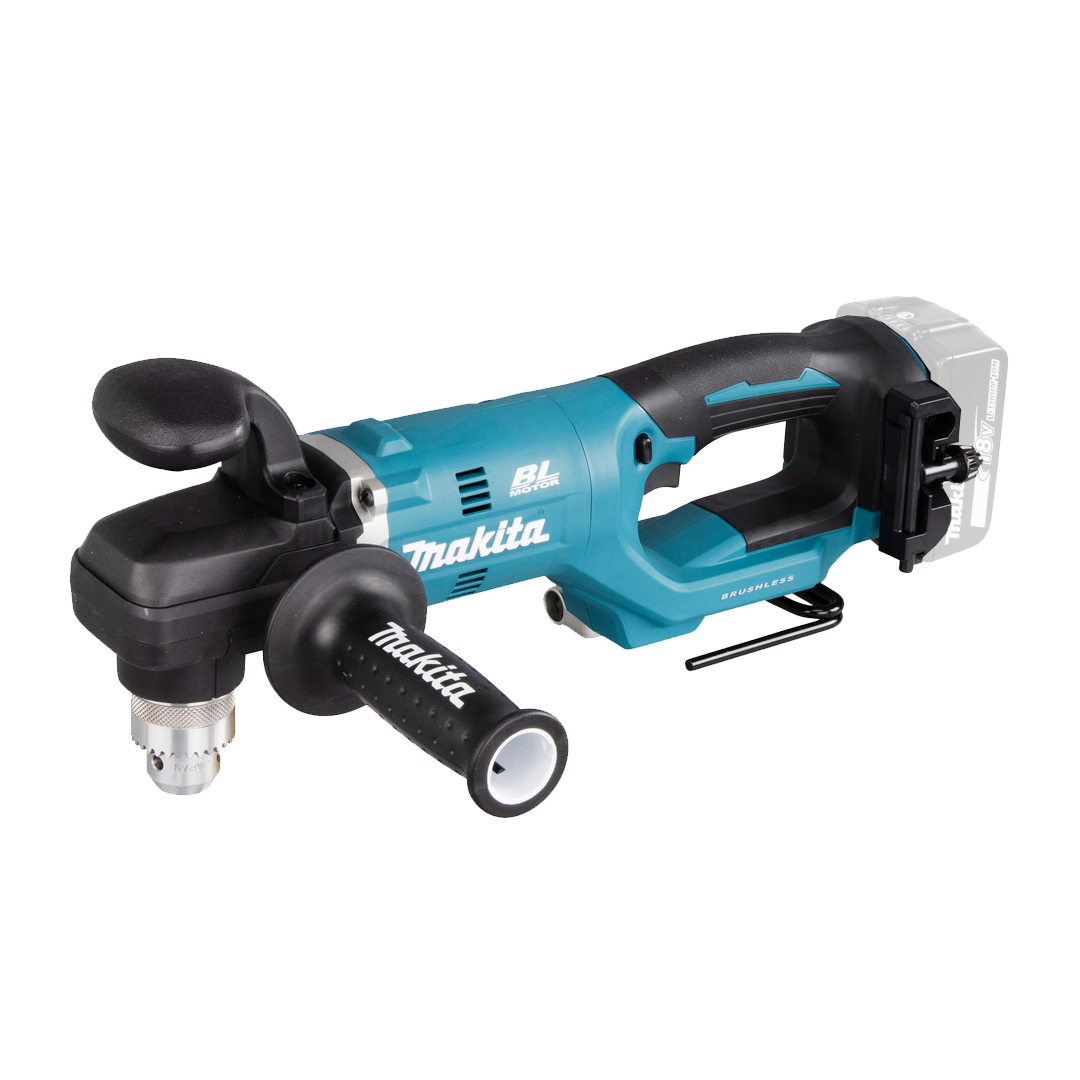 Taladro de Rotación Angular Inalámbrico Makita 1/2 Pulgada 18V DDA450Z, transmisión mecánica de 2 velocidades, capaz de perforar agujeros de gran diámetro en modo de baja velocidad, motor BL elimina las escobillas de carbón, permitiendo que el motor BL funcione de forma más fría y eficiente para una mayor vida útil. El motor BL utiliza la energía de forma eficiente para adaptar el par y las RPM a las demandas cambiantes de la aplicación.