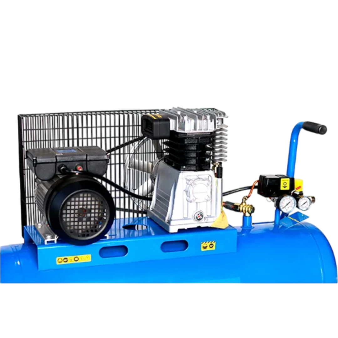 Compresor de Aire Lubricado GoodYear 3hp 100lt GY31001BS, es la unidad más grande y potente de la serie revisada, diseñada para uso profesional e industrial. Cuenta con un motor de 3 HP (2200W) que impulsa dos pistones y está conectado a un gran calderín de 100 litros, la mayor capacidad de almacenamiento. Ofrece un alto caudal de aire de 336 L/min a una presión constante de 115 PSI (8 bares), y opera a una tensión de 110 V / 60 Hz. A pesar de sus dimensiones de 106.6 x 39.6 x 80 cm y su peso de 57.4 kg, su diseño robusto con ruedas de 6″ facilita el desplazamiento dentro del área de trabajo, y tiene un nivel de ruido de 94 dB.