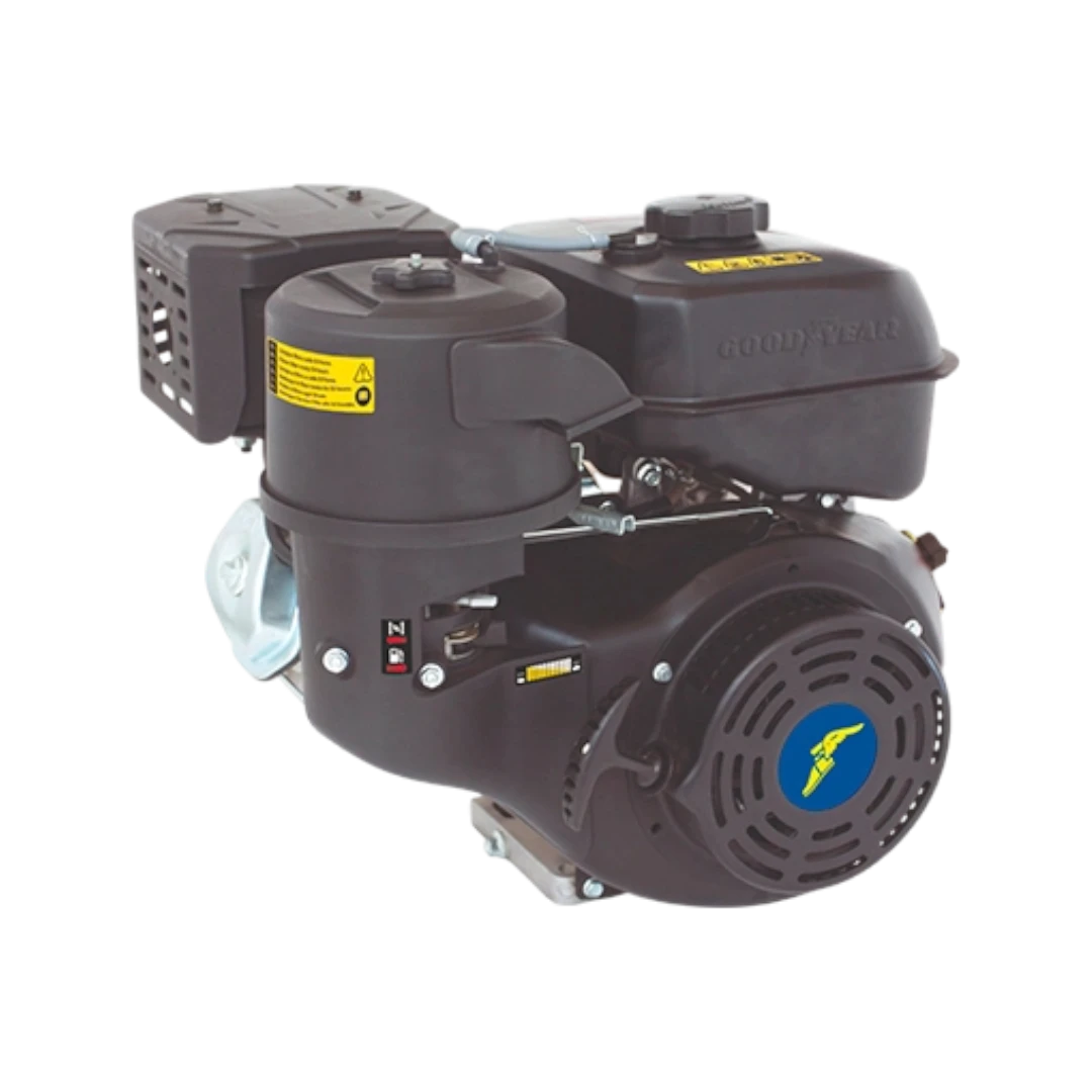 Motor Gasolina GoodYear 13hp GY390Q, es un motor de gasolina OHV (4T) de alta potencia con 13 HP y una cilindrada de 389 cm³, que alcanza las 3600 rpm. Al igual que los modelos «Q», este motor está optimizado para entornos de Construcción y Agro gracias a su destacado Filtro Ciclón (aunque se lista como semiseco, se especializa para ese uso), y ofrece un par neto de 25 Nm a 2500 rpm. Posee un tanque de combustible grande de 6.5 L y se arranca manualmente.