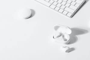 white-wireless-earbuds-with-computer-keyboard-e1674237750852-300x200.jpg